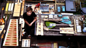 Besides his career as an instrument designer he also plays live with his collection of string instruments, kalimba’s, found objects, phone mics, amped coke bottles and noise synths. Rhythmic droney noise music. Sonic Youth meets BBC Radiophonic Workshop.